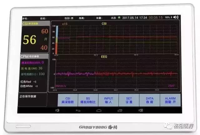格阳医疗生产的GY6000A型麻醉深度监测仪具有极高的安全性、稳定性及准确性。临床观察表明,在使用高频仪器(高频电刀等)的情况下,GY6000A型麻醉深度监测仪具有更高的抗干扰性,可以满足麻醉过程中麻醉医生对麻醉患者意识水平的监测,从而精准地指导术中麻醉药剂量的使用。